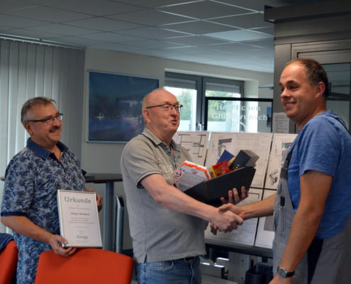 Zur Feier des Anlasses gratulierten Ralf Schmidt und Reiner Schmidt den Jubilaren persönlich. In einer feierlichen Runde wurden Präsente überreicht, um die Dankbarkeit und Wertschätzung zum Ausdruck zu bringen.